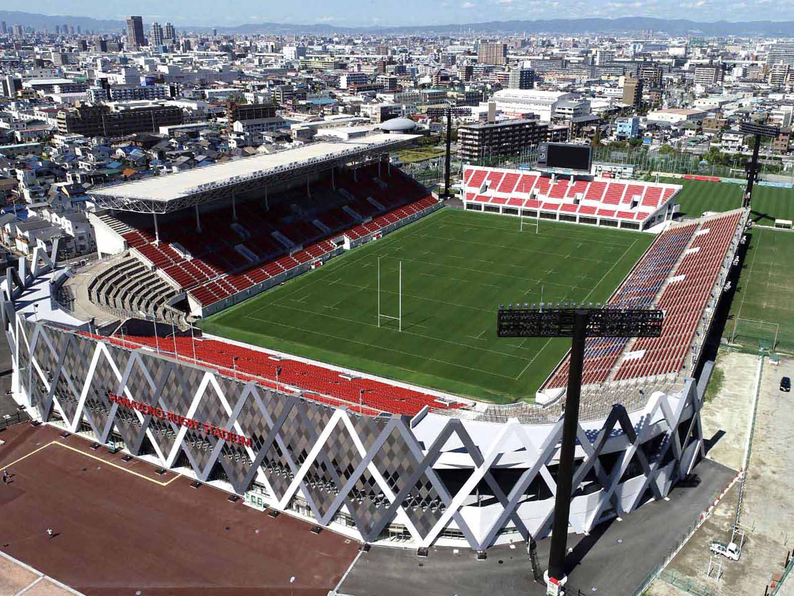 ラグビーワールドカップ会場人工芝敷設 2019年ラグビーワールドカップ日本大会の会場となった東京スタジアム、そして大阪の花園ラグビー場グラウンドエリアの人工芝敷設工事を行いました。 東京スタジアム 東京スタジアムラグビーグラウンドと観客席の間のゾーンに 2333㎡の人工芝を展開。「JAPN日本2019」のロゴを挿入し 会場を鮮やかに色添えています。 (サムネイルをクリックして拡大、ギャラリー画面に移動) 花園スタジアム 大阪会場である花園ラグビー場のフィールドサイド部分に 人工芝を展開。ノンサンドと砂入り人工芝の2種類を施工しました。 (サムネイルをクリックして拡大、ギャラリー画面に移動) BACK